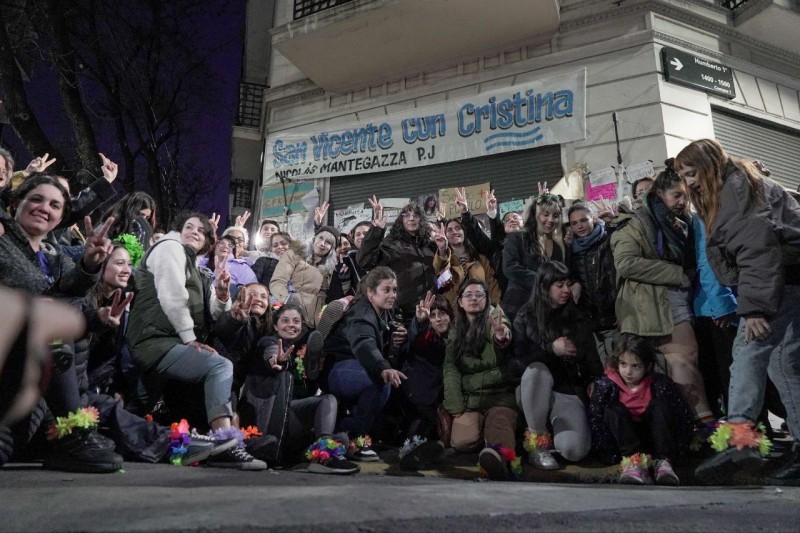 Un grupo de mujeres se concentró este jueves en la esquina de San José y Humberto I, donde Cristina Kirchner cumple con su detención domiciliaria, para respaldarla ante el envío de la tobillera electrónica para controlarla por parte del TOF N°2.