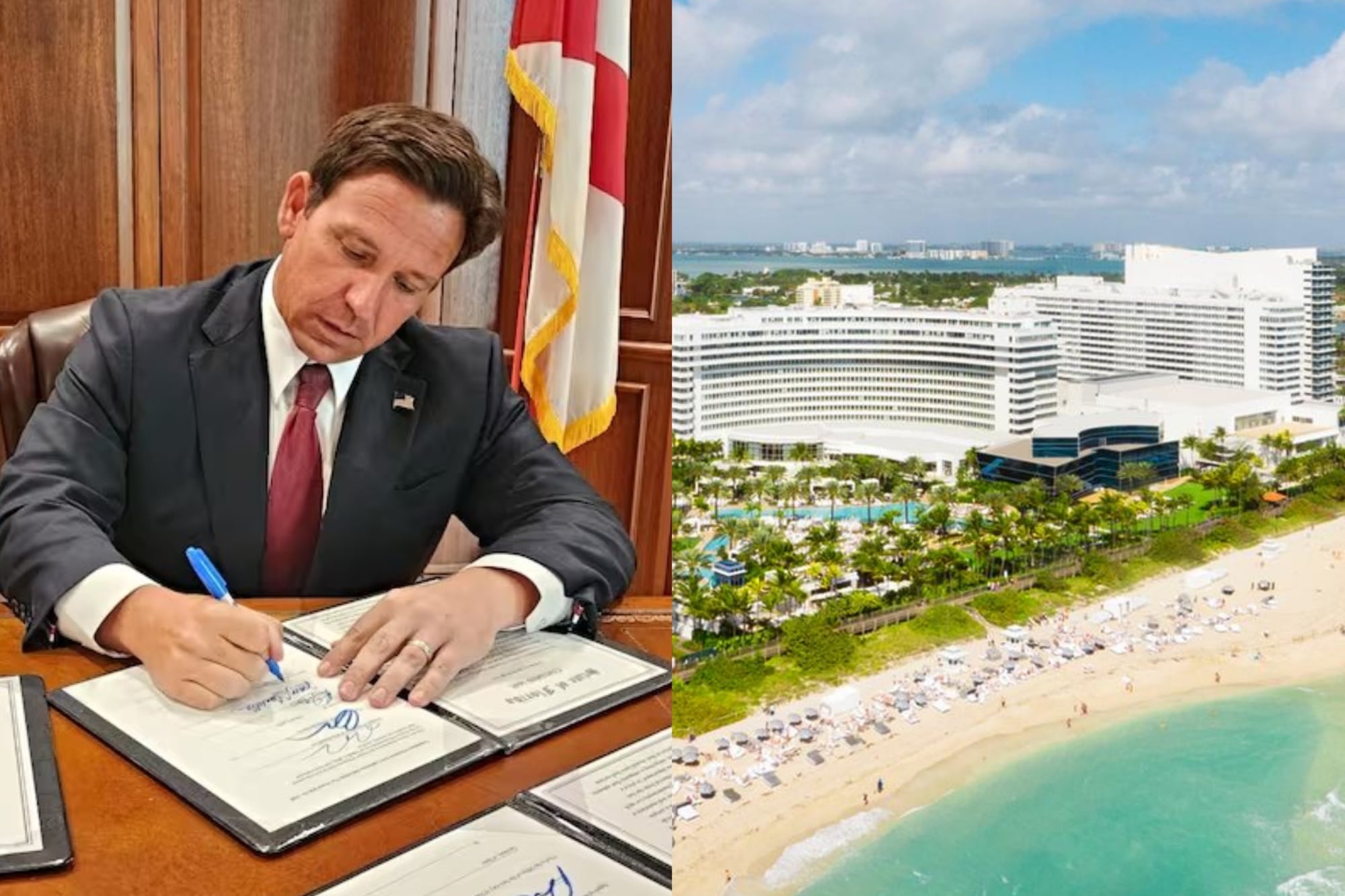 El gobernador Ron DeSantis firmó la ley HB 399, que permite al hotel Fontainebleau avanzar con un proyecto de parque acuático sin pasar por la revisión de la junta de preservación histórica local, generando debate sobre la protección del patrimonio.